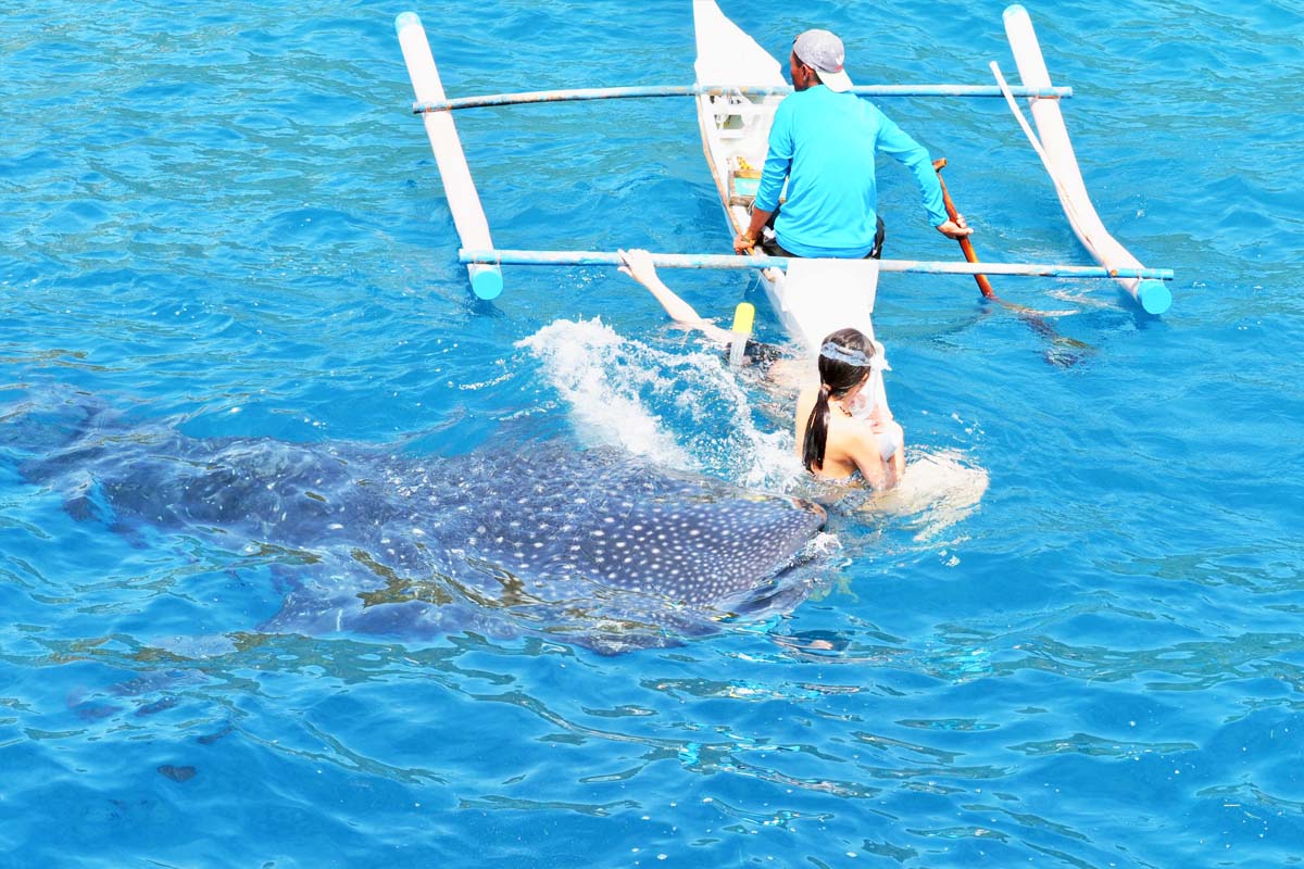 【歐斯陸鯨鯊保育區】:為了把握住親見鯨鯊,清早出發前往位於宿霧市郊的鯨鯊保育區~歐斯陸,抵達後聆聽解說員進行鯨鯊生態和安全守則說明之後,隨即跳上賞鯨鯊船向大海駛去,剛開始船在海灣中繞著圈子,鯨鯊保育員他們睜大眼睛觀看著海面的變化,從海浪波動的形式、海中陰影、魚遊行徑來判斷是否鯨鯊的到來。一旦聽見工作人員傳來:「鯨鯊!」的呼喊,他們隨即關掉動力馬達,靜待著鯨鯊浮現的背鰭,然後終於一見海洋世界中最大型的魚類~鯨鯊。隨即戴上蛙鏡、咬緊呼吸管,噗通跳下水,準備與鯨鯊面對面近距離接觸(禁止觸摸或跟隨鯨鯊尾部,也禁止使用水下相機閃光燈)!此時在海面下只能聽見船夫的划槳聲跟鯨鯊的吐氣聲,如果運氣好的話這次也許可以見到鯨鯊家族圍繞著你,經歷這場空前絕後的與鯨鯊共舞的節目之後,相信許多人在短時間之內,都難以平撫興奮地情緒,自2002年華盛頓公約組織已將鯨鯊列為保育類動物,經過世界自然動物保護協會WWF長期追蹤及研究,證實鯨鯊是卵胎生,但成年鯨鯊可長達12.2公尺,和一輛巴士一樣大,體重可達40公噸,被稱為全世界最大的魚類,並且能夠存活百年之久,性喜活動於熱帶與亞熱帶海域,鯨鯊的蹤跡在非洲東西岸、加勒比海、菲律賓。今日的午餐安排於鯨鯊保護中心享用菲式風味料理。