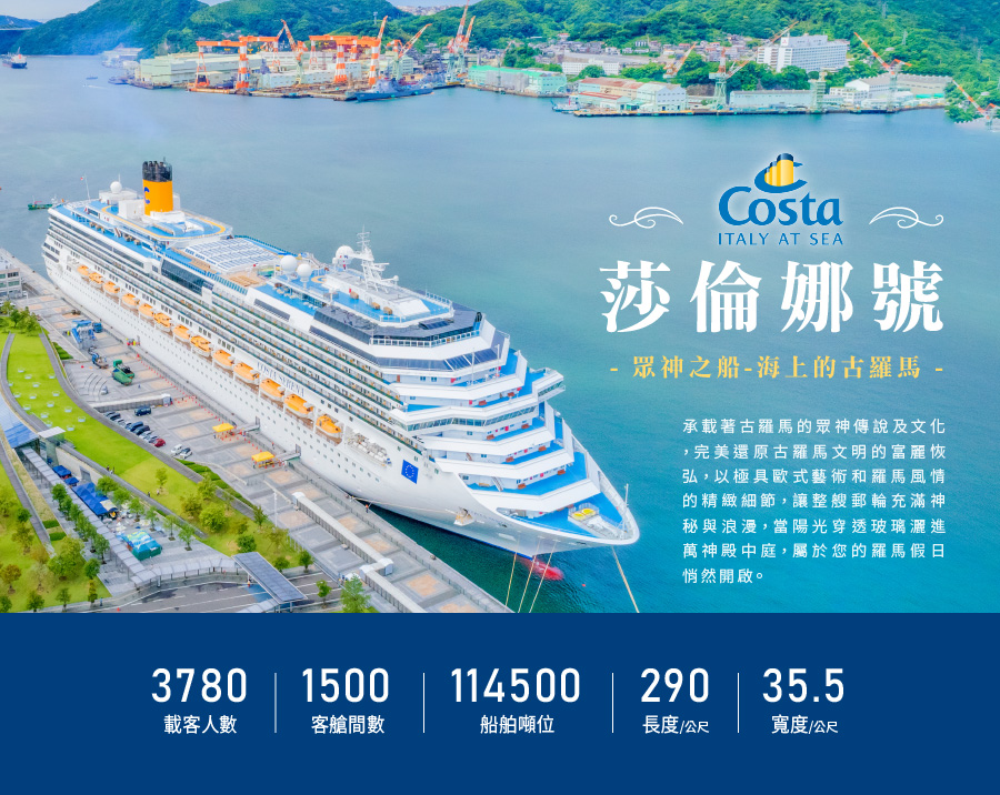 基隆/歌詩達莎倫娜號【郵輪16:00啟航】
